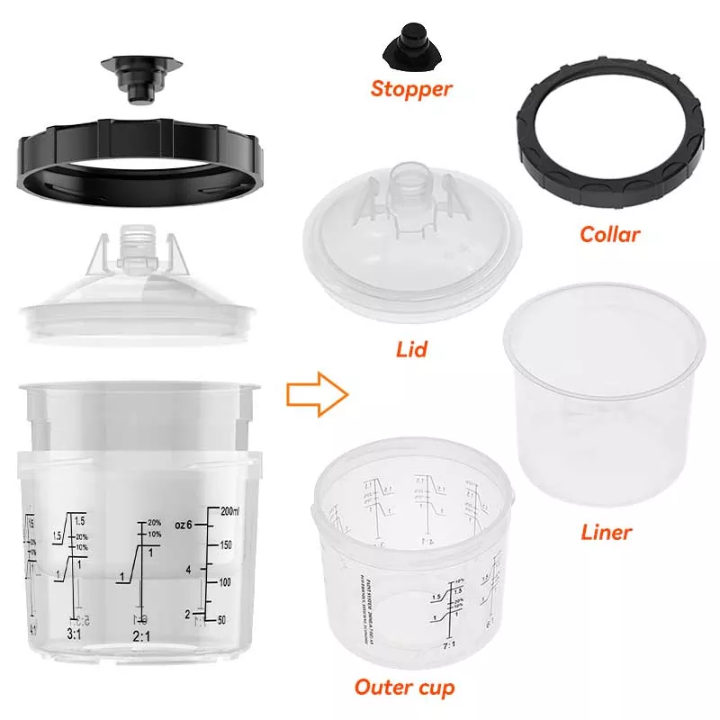 Produk iki sejatine ngganti Piala Gravitasi tradisional amarga ora mung nyimpen cat liyane, nanging uga nambah efisiensi lukisan. Khusus, desain sing apik banget saka liner otomatis nalika lukisan nggawe cat digawe digunakke; Kangge, desain panggantosen cepet ditambahake ngupayakake ngumbah cangkir, saéngga kerja lukisan sing bakal ditindakake kanthi efisien lan bola-bali. Kita duwe adaptor kanggo meh kabeh merek bedhil semprotan ing pasar kanggo nemoni pengalaman mbutuhake penggemar gun bedhil sing beda. Adaptor digawe saka stainless steel, sing tahan kanggo nglukis karat lan awet banget. Kombinasi liner sing ketat saka liner kanthi tutup mesthekake yen sistem cangkir ora bocor nalika lukisan, lan ndhukung cat jangka panjang cat sing ora digunakake kanggo ngindhari sampah.