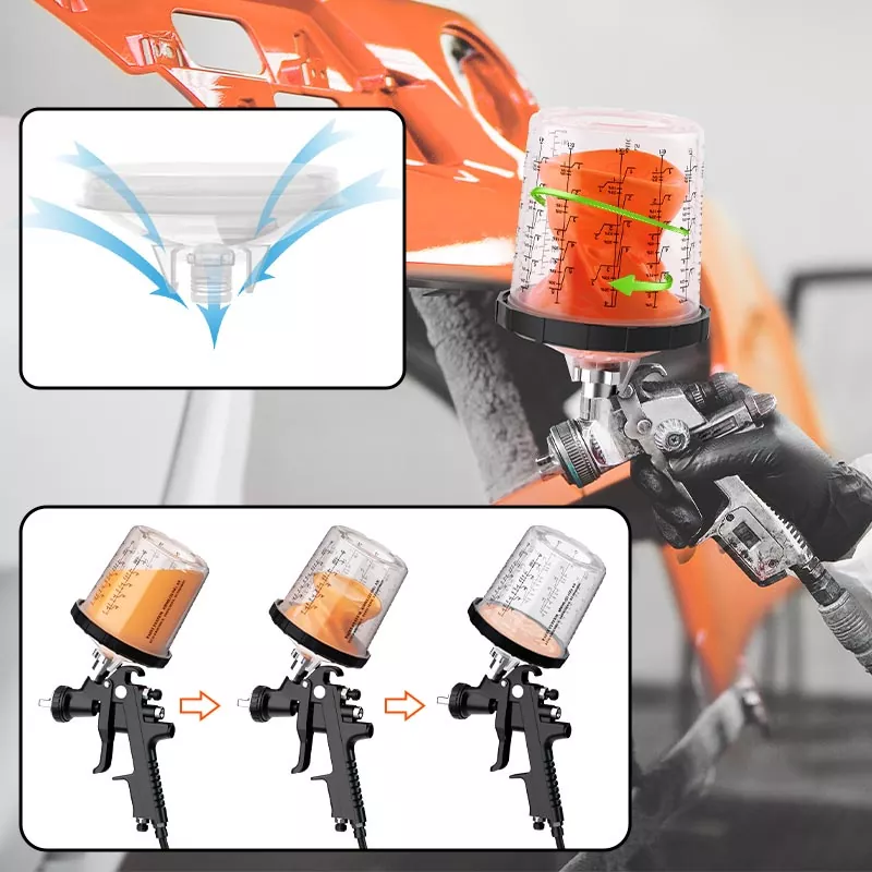 Sistem Piala Paintase 850ML sing duwe 28,5 x (850 ml) Cat, cocog kanggo ndandani 4 panel utawa kurang saka nyemprotake, kalebu kualitas cupu sing apik kanggo bisa digunakake kanggo ngilangi cangkir bersembung lan luwih efisien. Cat bisa dicampur kanthi langsung ing tuwung semprotan, lan mung ngresiki minimal dibutuhake sawise saben panggunaan. Yen sampeyan pengin nggawe semprotan bedhil gantung, hubungi kita kanggo nyoba gratis.