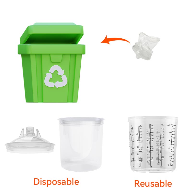 • Desain sing resik ngirit wektu:Bedhil tradisional mbutuhake reresik wektu sing entek sawise saben panggunaan. Cangkir gun semprotan sing bisa digunakake kanggo ngilangi langkah iki, saéngga owah-owahan warna utawa owah-owahan materi ing 30 detik.